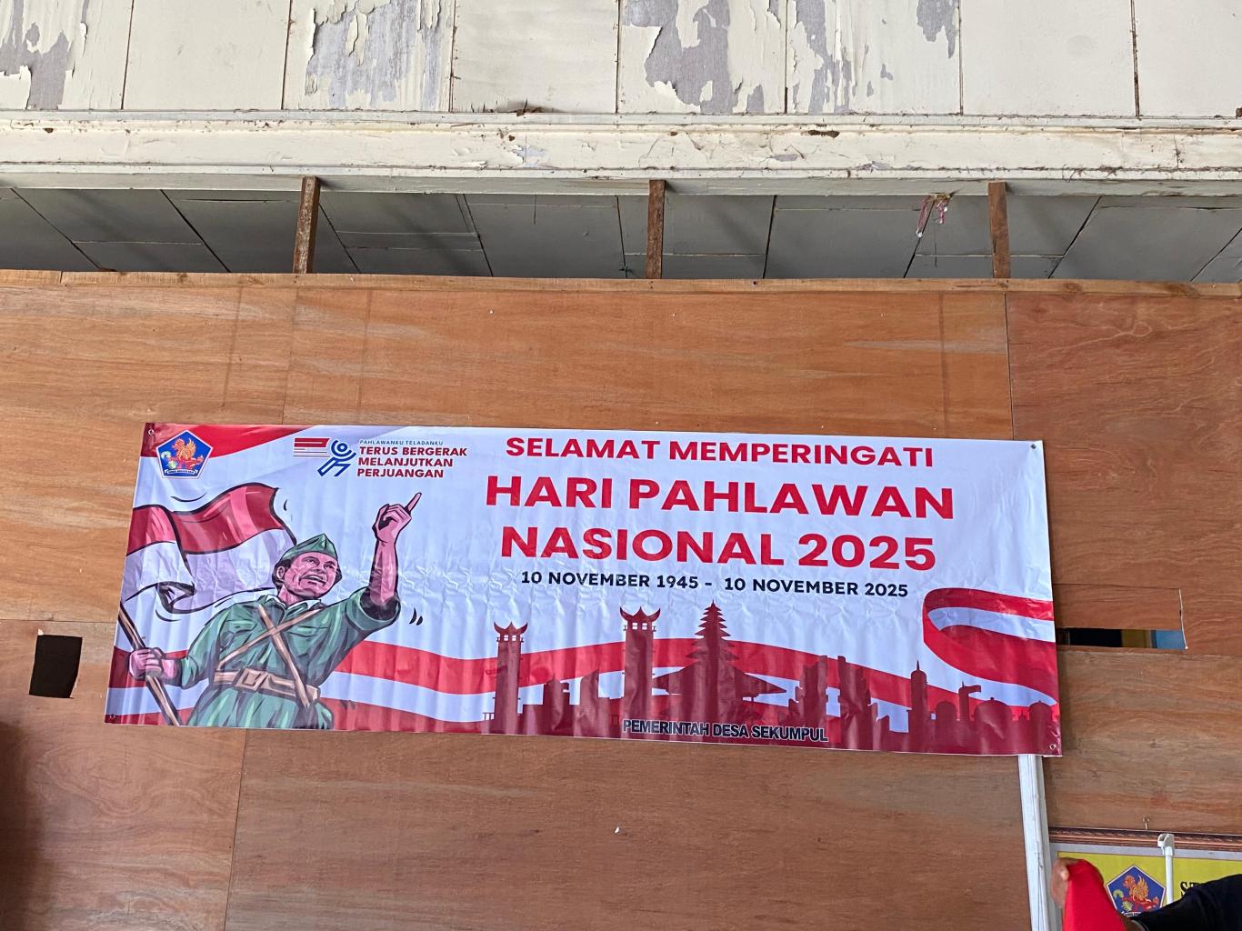 Sekumpul, 07 November 2025 — Pemerintah Desa Sekumpul melaksanakan kegiatan pemasangan spanduk bertema “Hari Pahlawan ke-80 Tahun 2025” dan pengibaran Bendera Merah Putih di area kantor desa. Kegiatan ini merupakan tindak lanjut dari Surat Edaran Dinas Sosial Kabupaten Buleleng Nomor B.100.3.4/6797/Dayasos-Dinsos/XI/2025 tentang Peringatan Hari Pahlawan Tahun 2025.